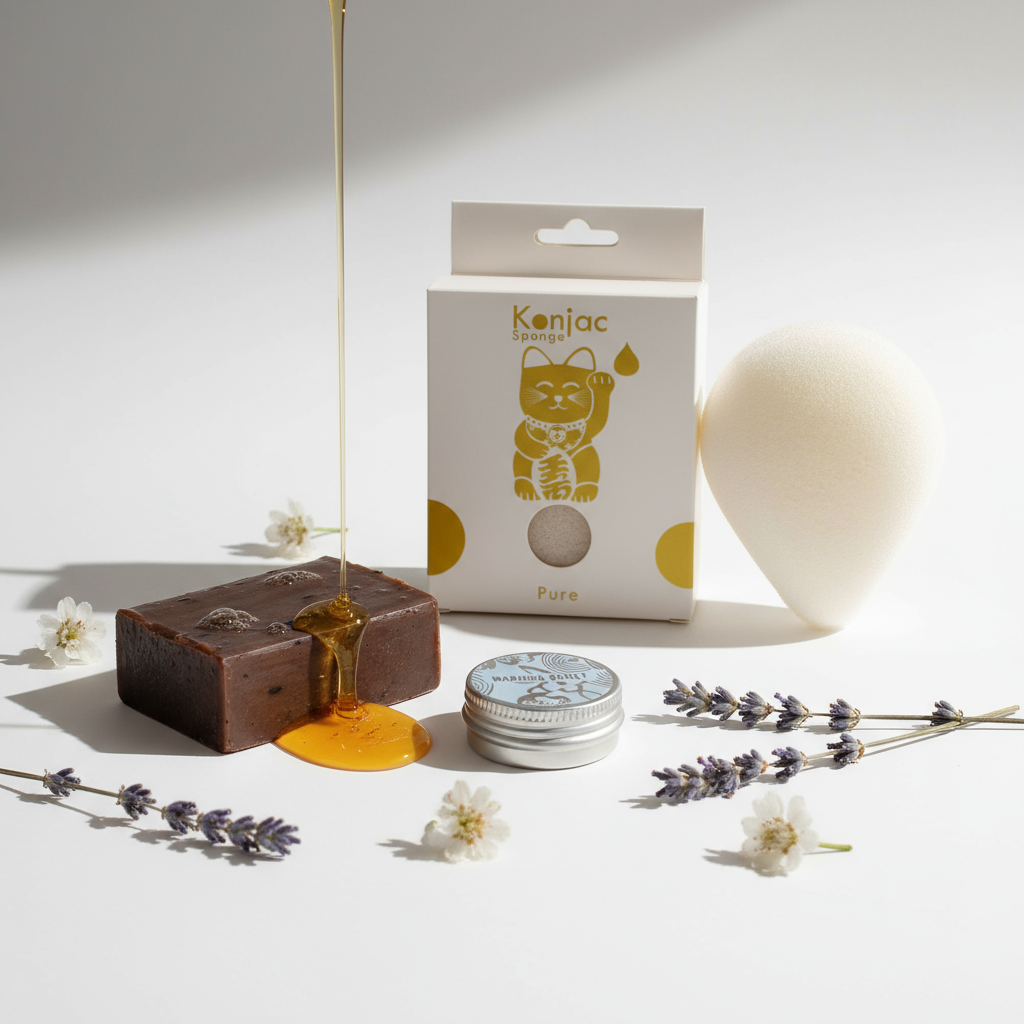 Cuida tu piel sensible con la delicadeza que merece con nuestro Kit Cuidado Completo Piel Sensible. Este pack combina tres productos naturales especialmente seleccionados para pieles delicadas: un nutritivo bálsamo labial de miel de manuka con propiedades reparadoras, jabón artesanal de arcilla con lavanda y vainilla para una limpieza suave y calmante, y una esponja facial konjac natural perfecta para pieles sensibles.